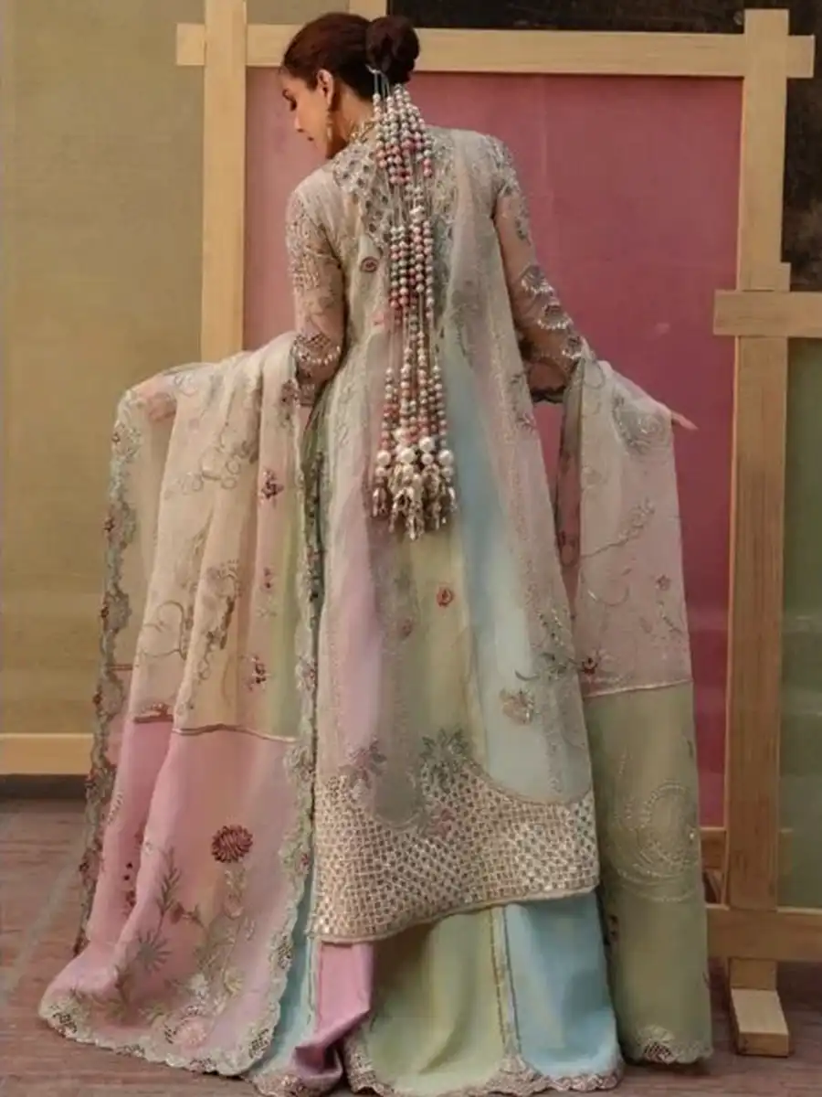 Centre panel with sequins, embroidery, adda work, and foil appliqué for an elegant finish.