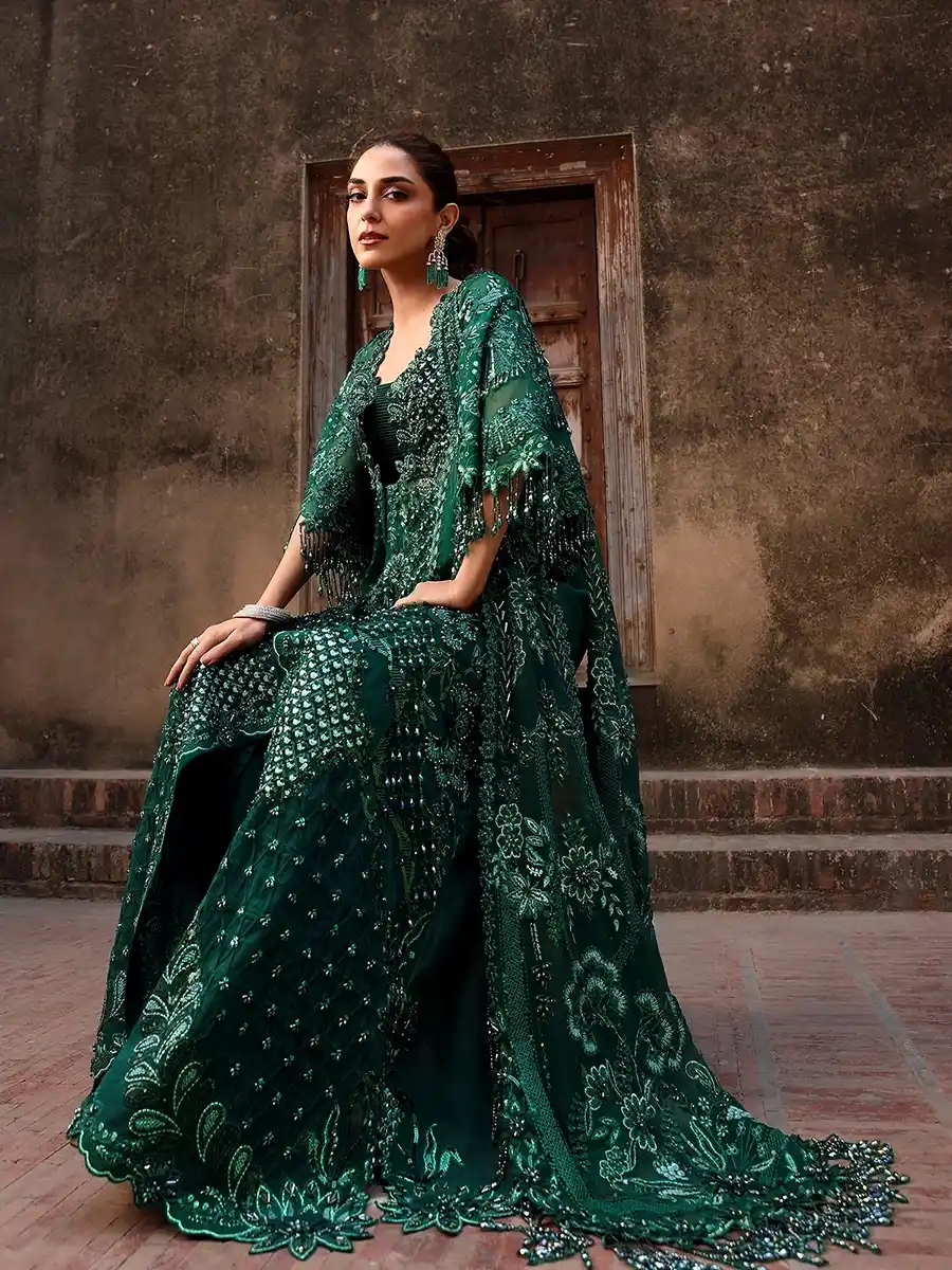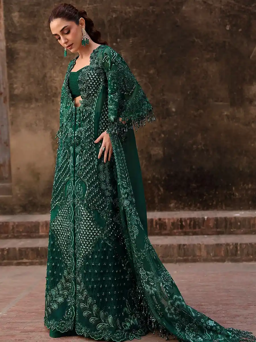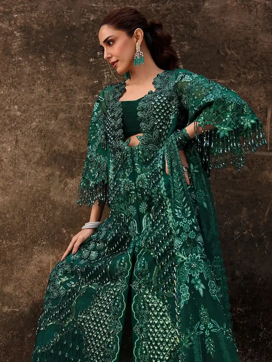 Centre panel with sequins, embroidery, adda work, and foil appliqué for a luxurious finish.