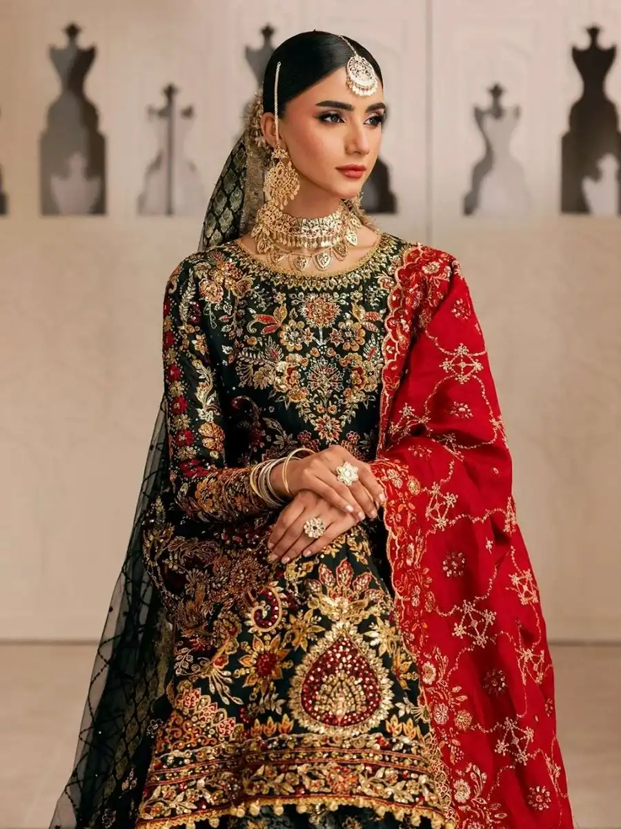 EMBROIDERED KATAAN SILK BACK EMBROIDERED ORGANZA BACK