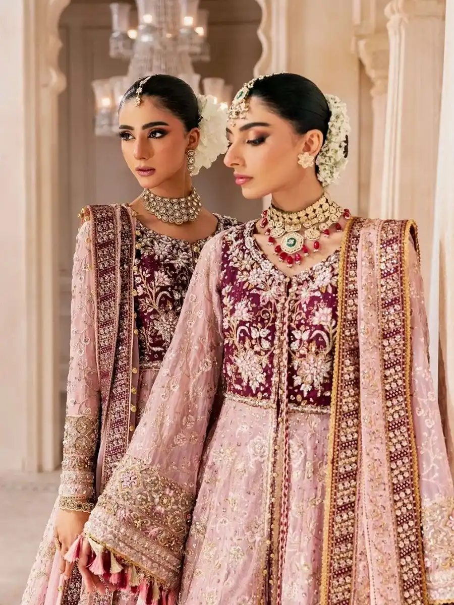 EMBROIDERED CHIFFON SLEEVES EMBELLISHED + EMBROIDERED ORGANZA SLEEVES BORDER
